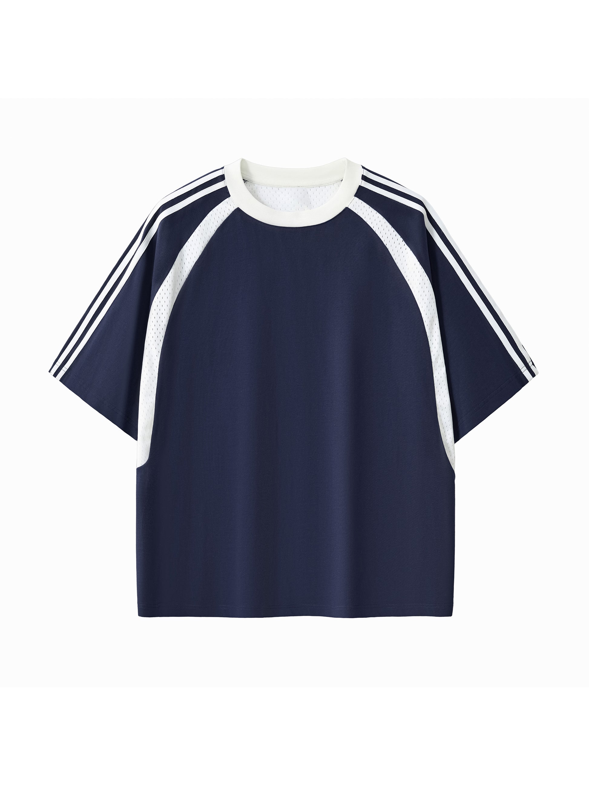 Contrast Stripes Panel Mesh T-shirt